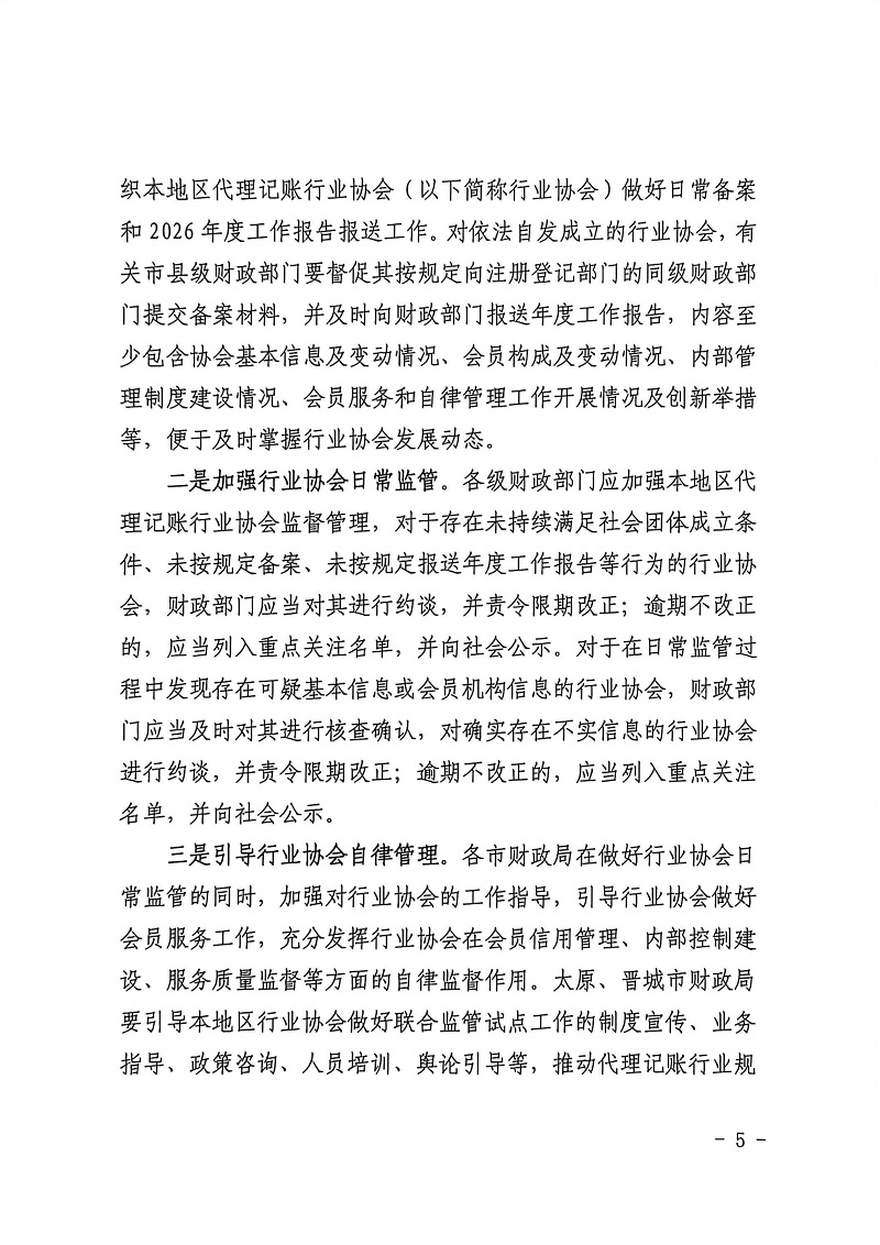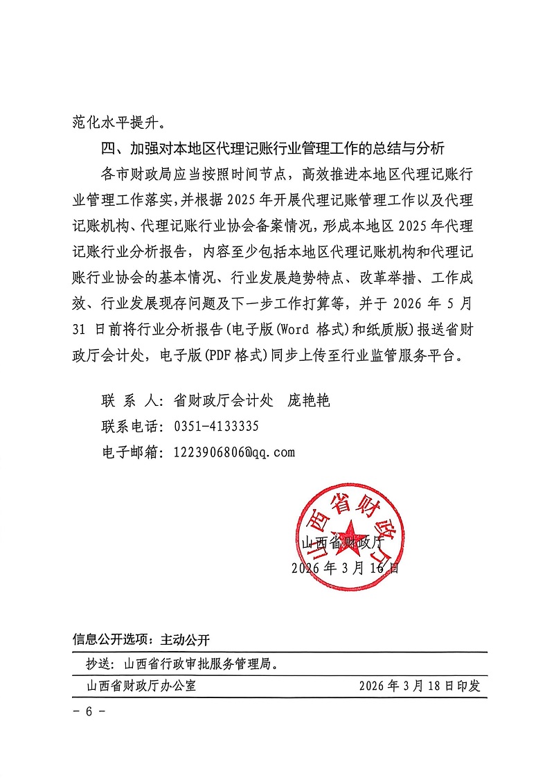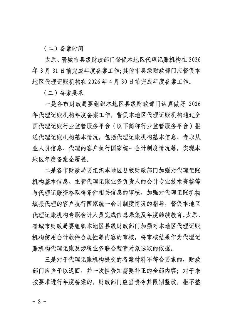 山西省财政厅关于做好全省 2026 年代理记账行业管理工作的通知