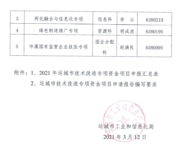 运城市工业和信息化局关于组织开展2021年运城市技术改造专项资金项目申报工作的通知