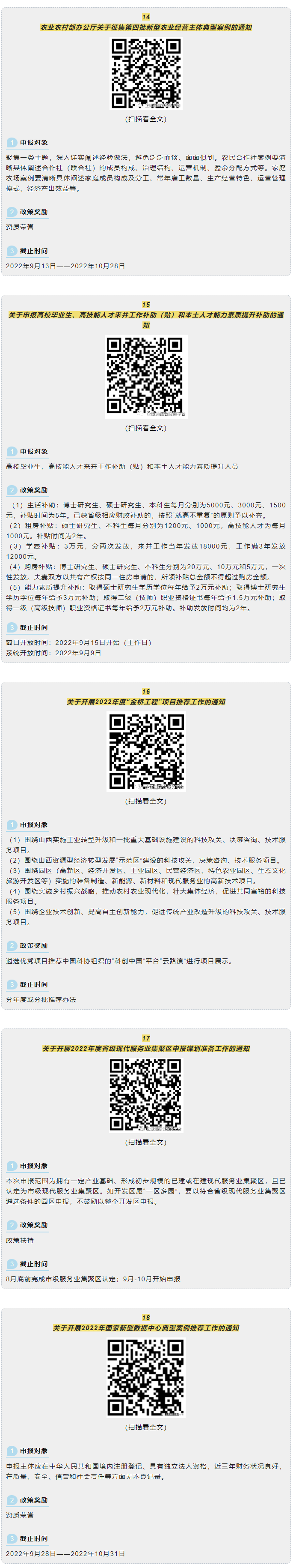 2022年山西省这38个项目正在申报中,千万不要错过!(10.10-10.14)
