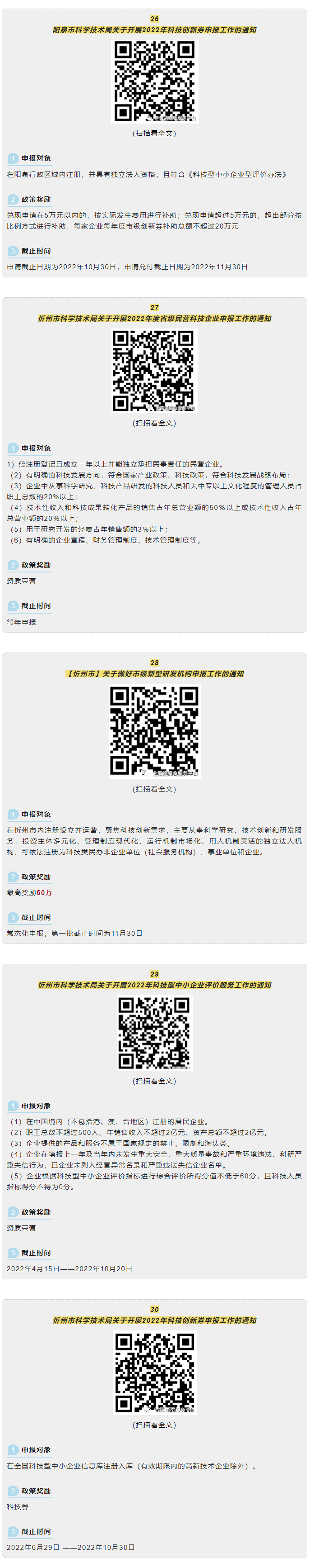 30  忻州市科学技术局关于开展2022年科技创新券申报工作的通知